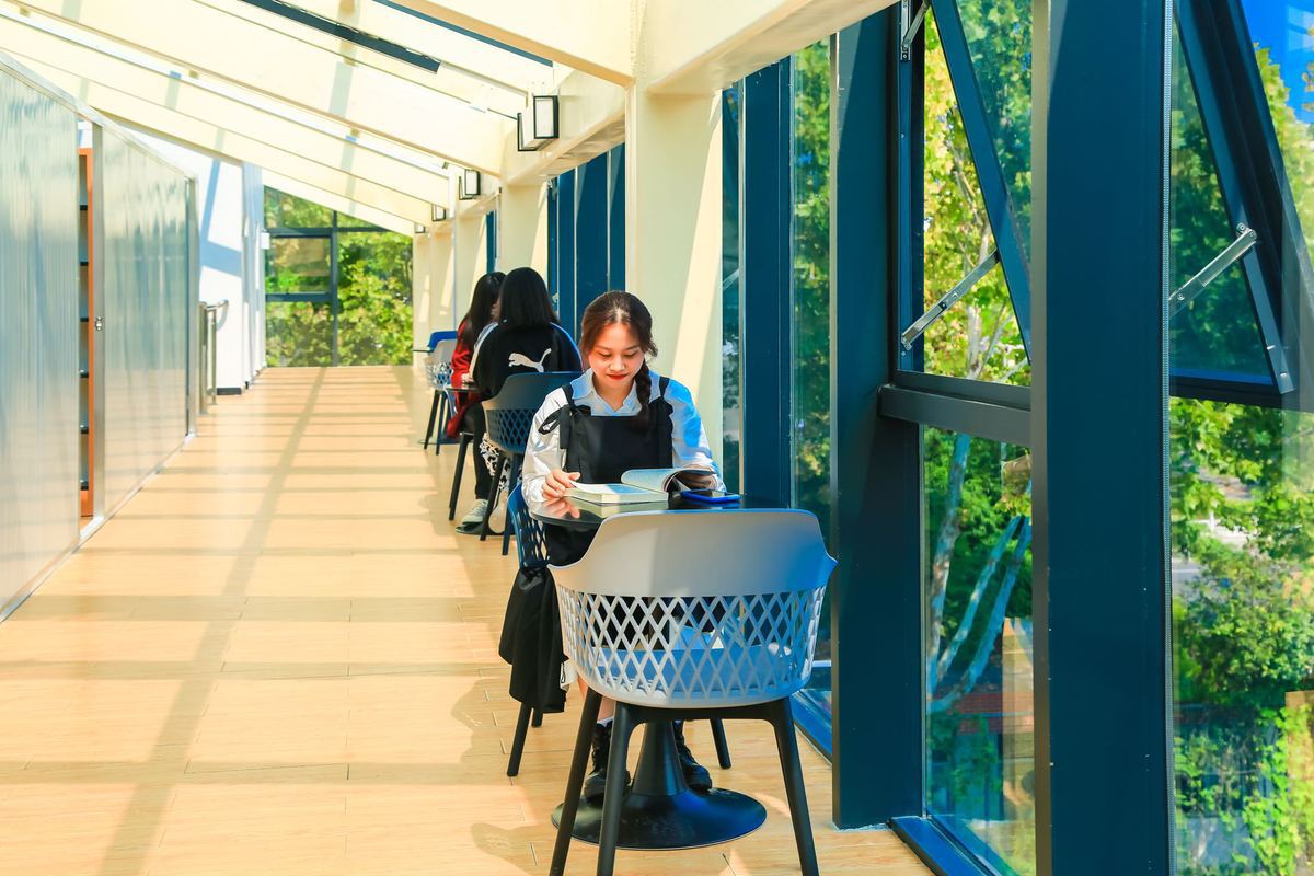 An open window offers fresh air for students reading on the fourth floor of the Xingchen Library at Wuhan University of Bioengineering in Wuhan, Central China's Hubei province. [Photo provided to chinadaily.com.cn]