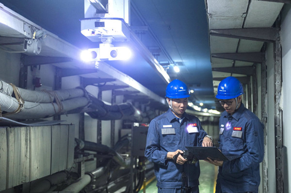 Employees of China Southern Power Grid inspect a facility in Zhuhai, Guangdong province. [Photo/Xinhua]