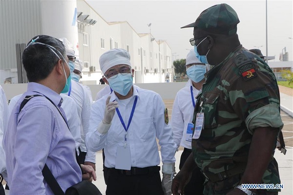 Members of a Chinese medical team talk with an Angolan expert at a hospital for COVID-19 patients in Luanda, Angola, Oct 8, 2020. China has sent a team of medical experts to help Angola in the fight against COVID-19. [Photo by Wang Xiong/Xinhua]