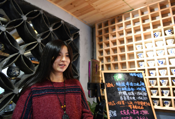 Zeng Wanzhen, wife of Hu Wenliang, introduces their homestay through the short video platform Douyin. [Photo/Xinhua]