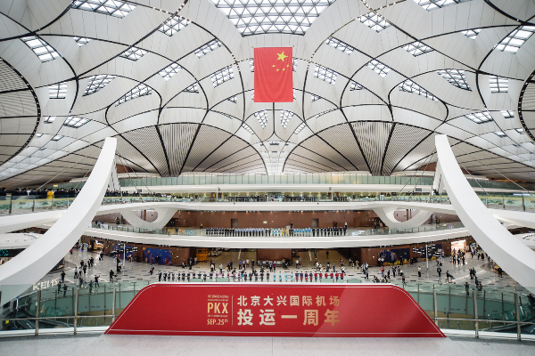 A flag-raising ceremony is held by the Civil Aviation Administration of China to mark the first anniversary of the Beijing Daxing International Airport in Beijing, Sept 25, 2020. [Photo/Xinhua]