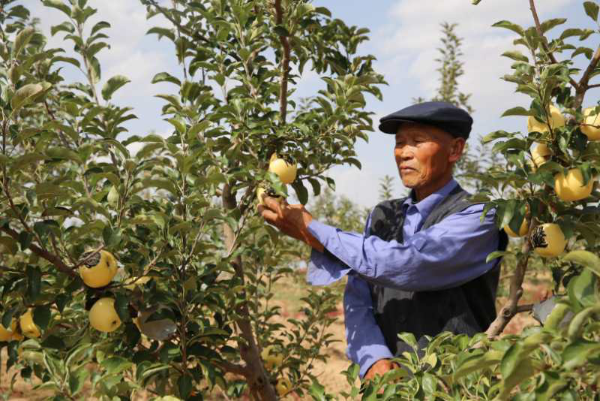 The other is Zhang Binggui, 80 years old, a Party member and former engineer of the Water and Soil Conservation Bureau of Hengshan County, Yulin city. After retiring in 2003, Zhang returned to his hometown to contract 300 mu of barren land for sand control and apple planting. After more than ten years of trial and error, he finally achieved success, adding a new way for his hometown to become rich and earn an income.