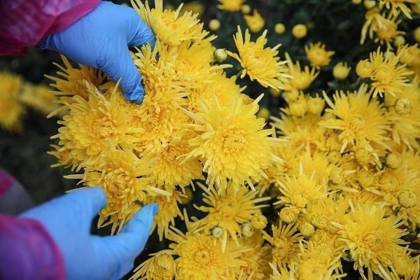 Farmers are currently hard at work picking chrysanthemum flowers at a horticulture center in Guiding county, Southwest China's Guizhou province. The plants will be used to make traditional Chinese medicines.