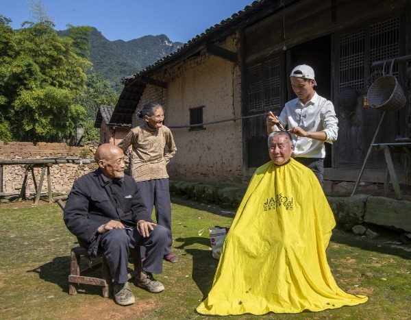 Zhuo tries to revisit the same villages at least once a month and takes daily necessities for elderly residents. Over the past three years, he has visited more than 50 remote villages and given free haircuts to more than 3,000 people.