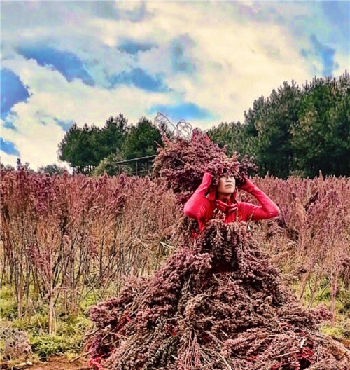 Kong's performance art is part of the ongoing public art season themed on quinoa in Tai'an village, Yulong county, Lijiang of Yunnan through Nov 22.