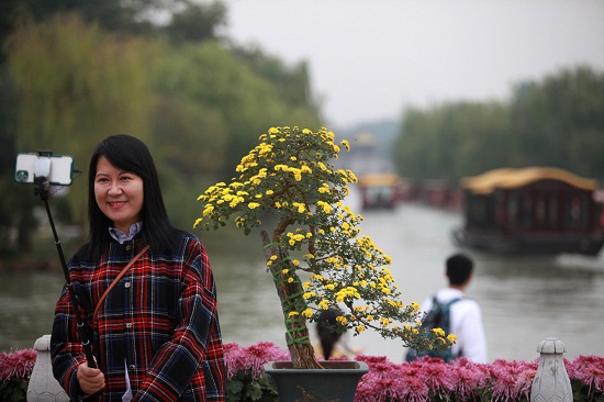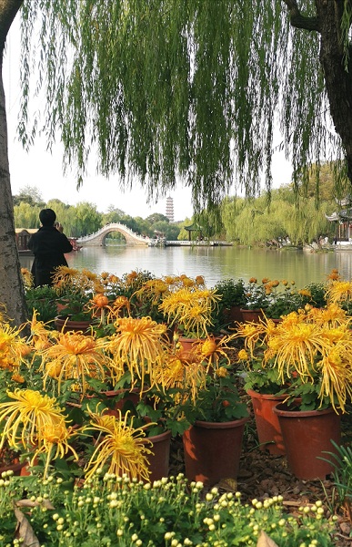 The popular annual chrysanthemum fair in the Slender West Lake scenic area started on Nov 1 and will last until Nov 25.