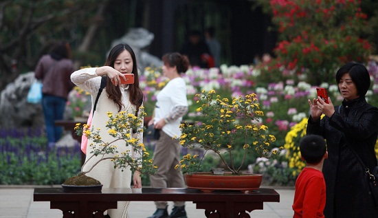 In addition to admiring rare flowers and different bonsai styles, visitors can watch photos and pictures themed on chrysanthemum blossoms and autumn views.