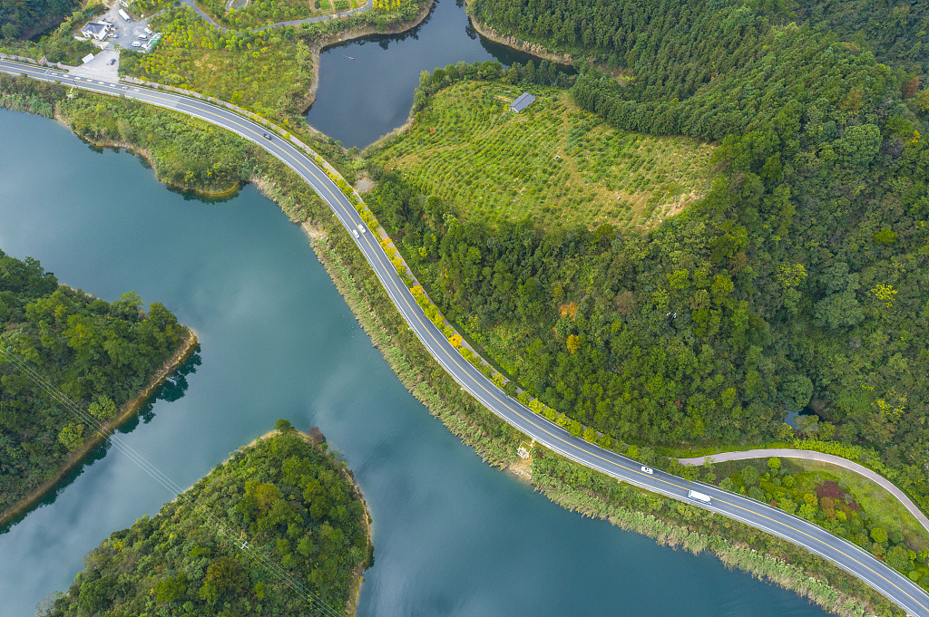 Trees along the lakeside road in Chun'an county in Hangzhou, East China's Zhejiang province are turning yellow. Autumn is in the air!