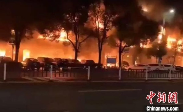 The fire started at around 2 am and spread to neighboring stores, according to the city's public security bureau on Monday.