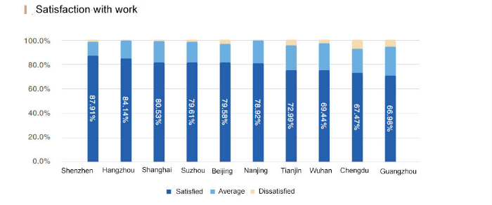 Some 76.52 percent of returned overseas students are satisfied with their current work, with the highest figure of 87.91 percent in Shenzhen, 84.14 percent in Hangzhou, 80.53 percent in Shanghai.