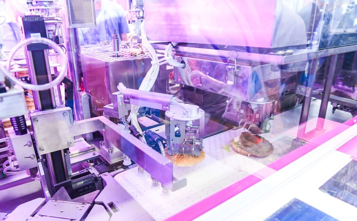 An automatic hamburger-making robot is seen at the 22nd China Hi-Tech Fair held in Shenzhen, South China's Guangdong province, on Nov 11, 2020. [Photo/Xinhua]