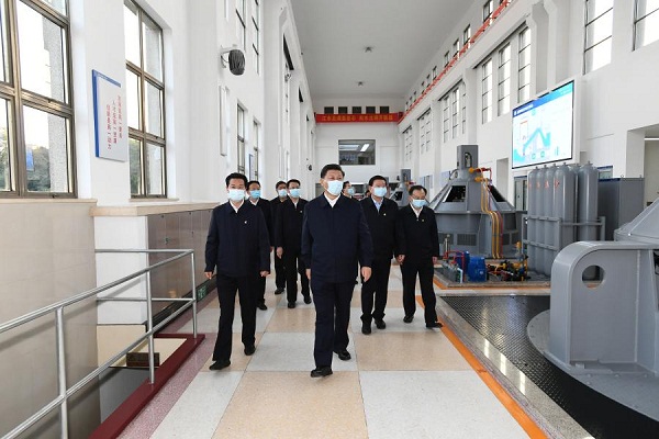 President Xi Jinping learns about the planning and construction of the eastern route of the country's South-to-North Water Diversion Project, and the operation of the Jiangdu Key Water Conservancy Project at a site of the water conservancy project in Yangzhou, Jiangsu province, Nov 13, 2020. [Photo/Xinhua]