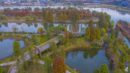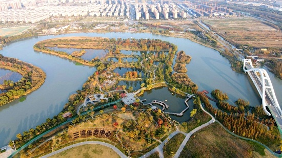 This is the best time for marvelous autumn views of the ecological and cultural park in the Sanwan area of Yangzhou. [Photo/yznews.com.cn]