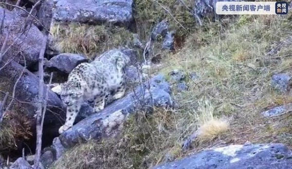 A snow leopard was caught on camera in the Genyen Mountain scenic area, Litang county of Ganzi Tibetan autonomous prefecture in Southwest China's Sichuan province, local authorities said Monday.