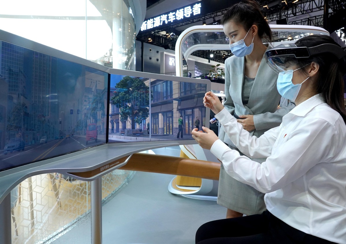 A visitor is introduced to a Nissan "Invisible-to-Visible" driving aid system at the 18th Guangzhou International Automobile Exhibition at the China Import and Export Fair Complex in Guangzhou, South China's Guangdong province, Nov 20, 2020. The ten-day exhibition opened Friday with the participation of international carmakers and auto parts suppliers. [Photo/Xinhua]