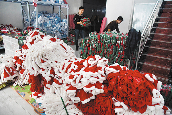 Sun Zhiguo is bracing for a busy month ahead. His online shop just received an order of 30,000 Santa Claus costumes from Thailand, for which his staff is working extra hours to guarantee delivery before Christmas.