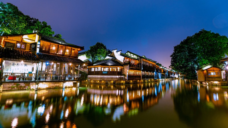 The night view of the West Scenic Zone in Wuzhen, Zhejiang province. [Photo by Xiao Da/chinadaily.com.cn]