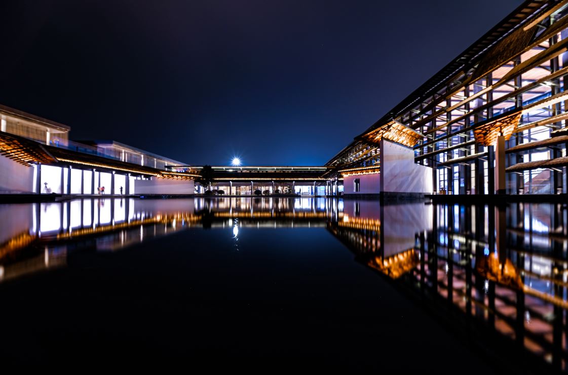 A night view of the Wuzhen International Internet Exhibition and Convention Center in Wuzhen, East China's Zhejiang province, Nov 23, 2020. [Photo by Xiao Da/chinadaily.com.cn]