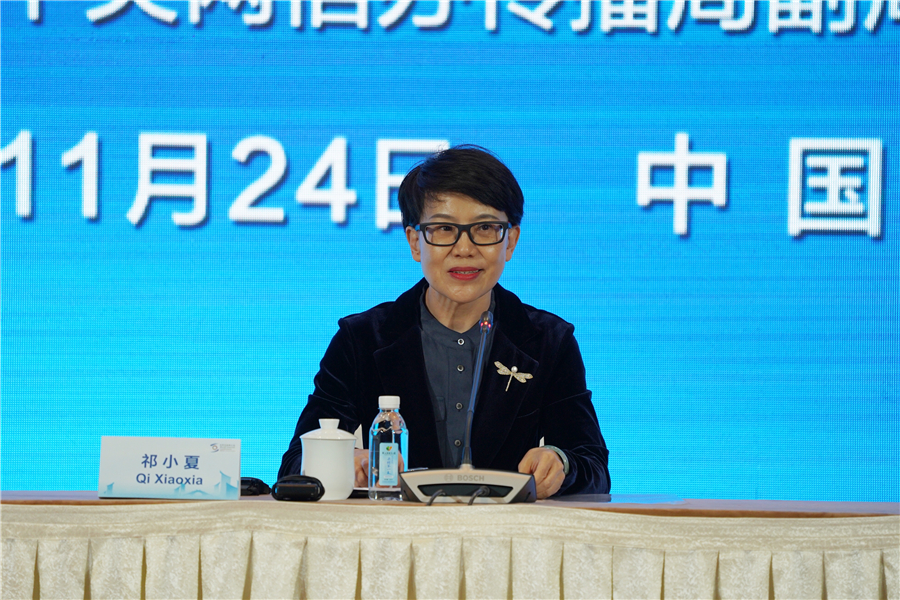 Qi Xiaoxia, director of the Global Cooperation Department under the State Internet Information Office, attends the closing news conference of the World Internet Conference in Wuzhen, East China's Zhejiang province, on Nov 24, 2020. [Photo by Gao Erqiang/chinadaily.com.cn]