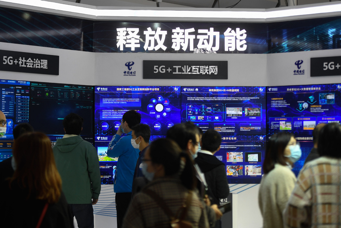People learn about 5G technology at the booth of China Telecom during the Light of Internet Expo of the 2020 World Internet Conference in Wuzhen, East China's Zhejiang province, Nov 22, 2020. [Photo/Xinhua]