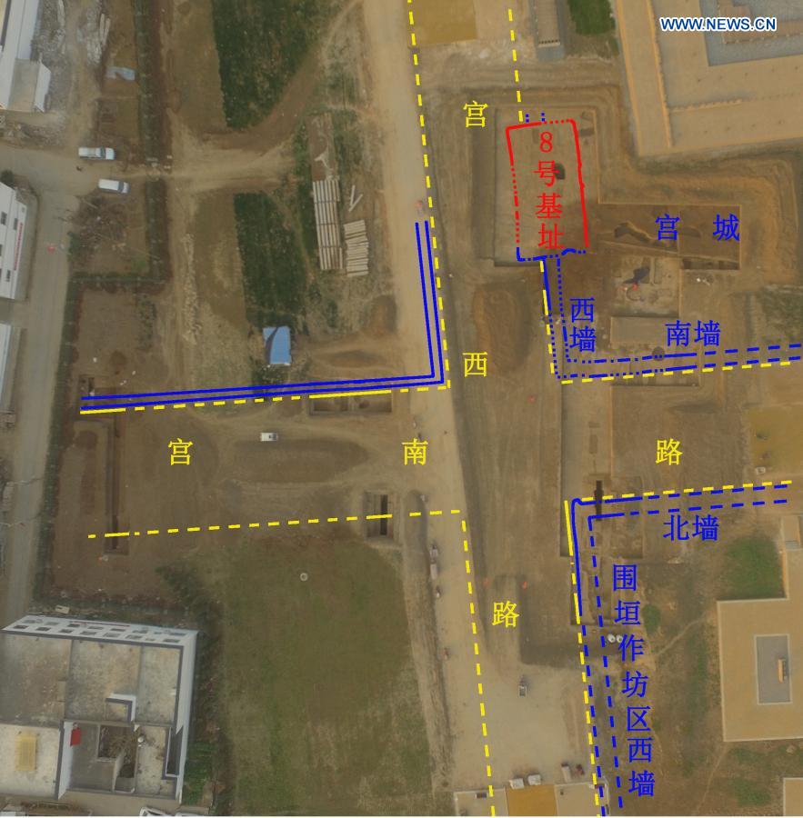 Undated photo shows a criss-cross road layout at the Erlitou Relics site in Yanshi, entral China's Henan province. TO GO WITH "China's earliest multi-grid city layout discovered" (Erlitou relics site excavation team/Handout via Xinhua)