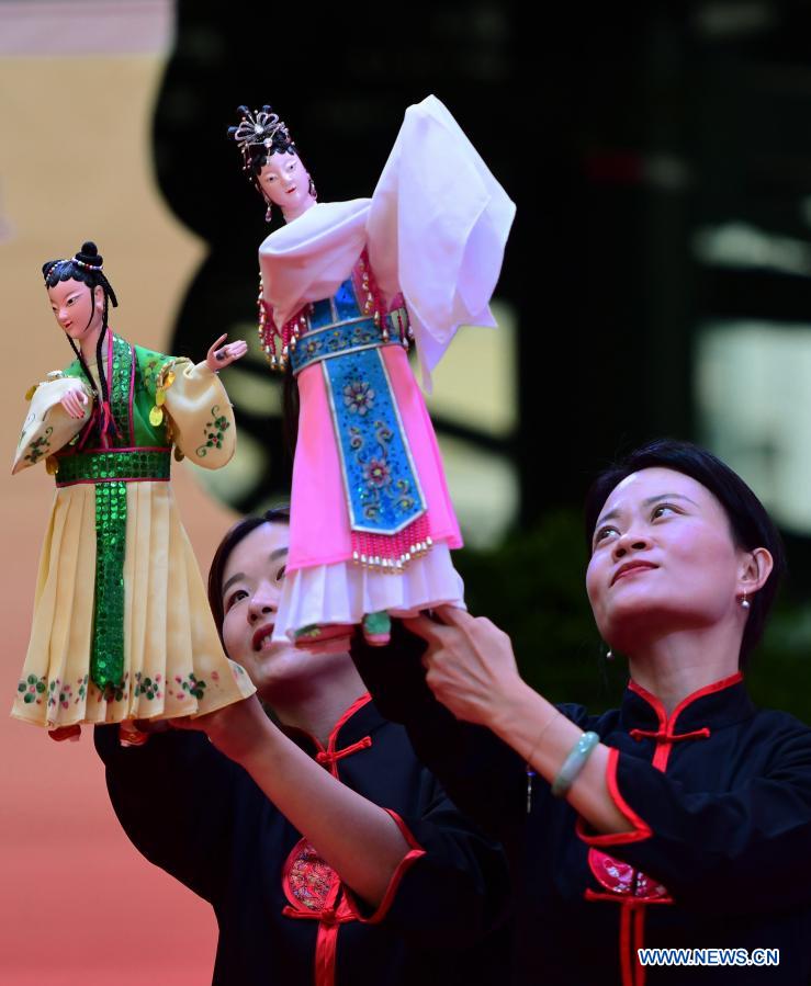 Actresses perform a puppet show in Fuzhou, East China's Fujian province, Nov 21, 2020. [Photo/Xinhua]
