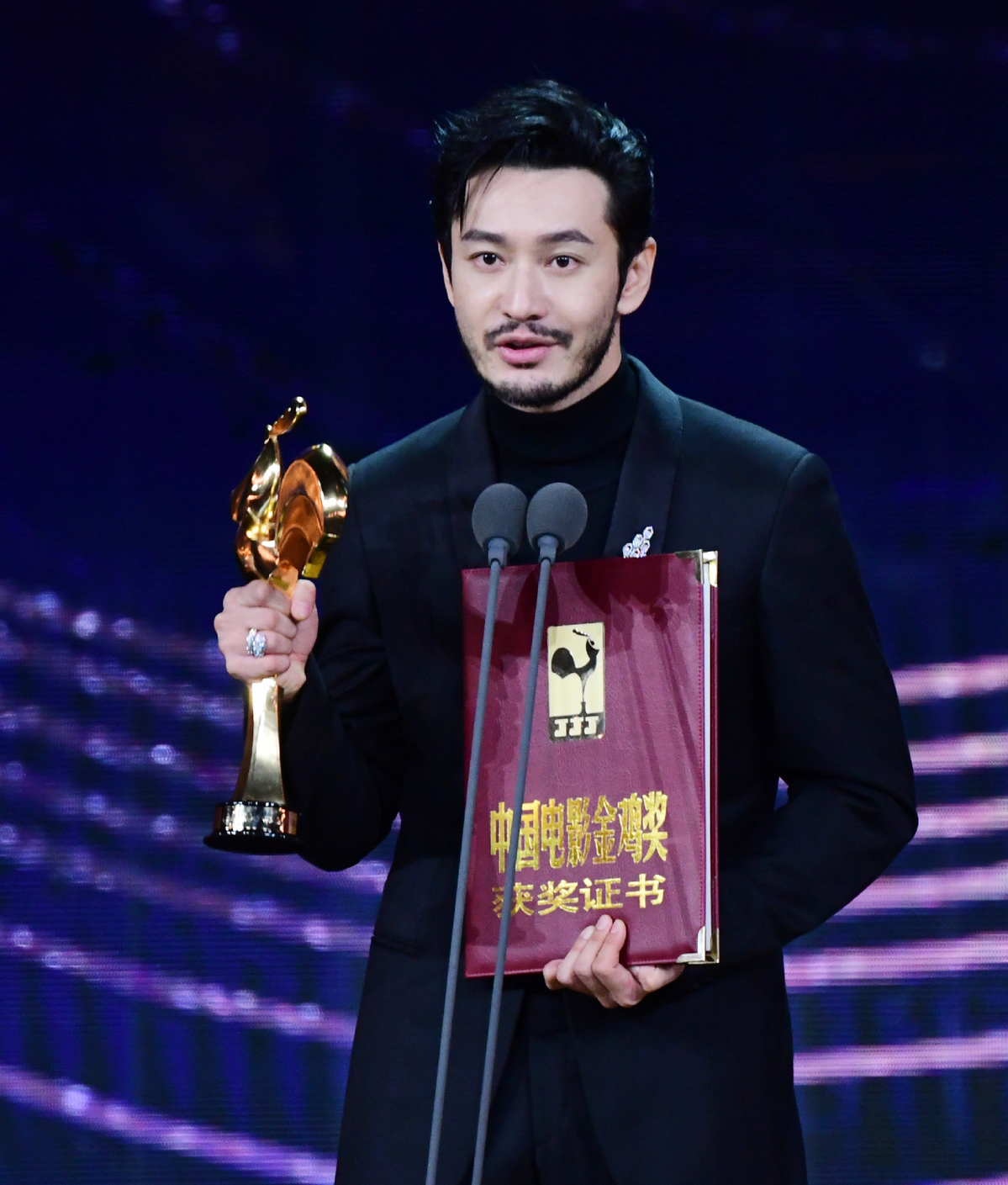 Chinese actor Huang Xiaoming accepts the Best Actor Award at the 33rd China Film Golden Rooster Awards in Xiamen, Nov 28, 2020. [Photo/Xinhua]
