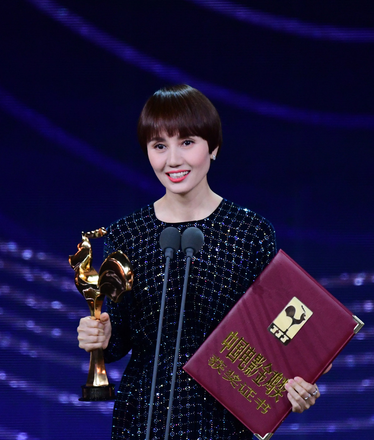 Chinese actress Yuan Quan wins the Best Supporting Actress at the 33rd China Film Golden Rooster Awards in Xiamen, Nov 28, 2020. [Photo/Xinhua]