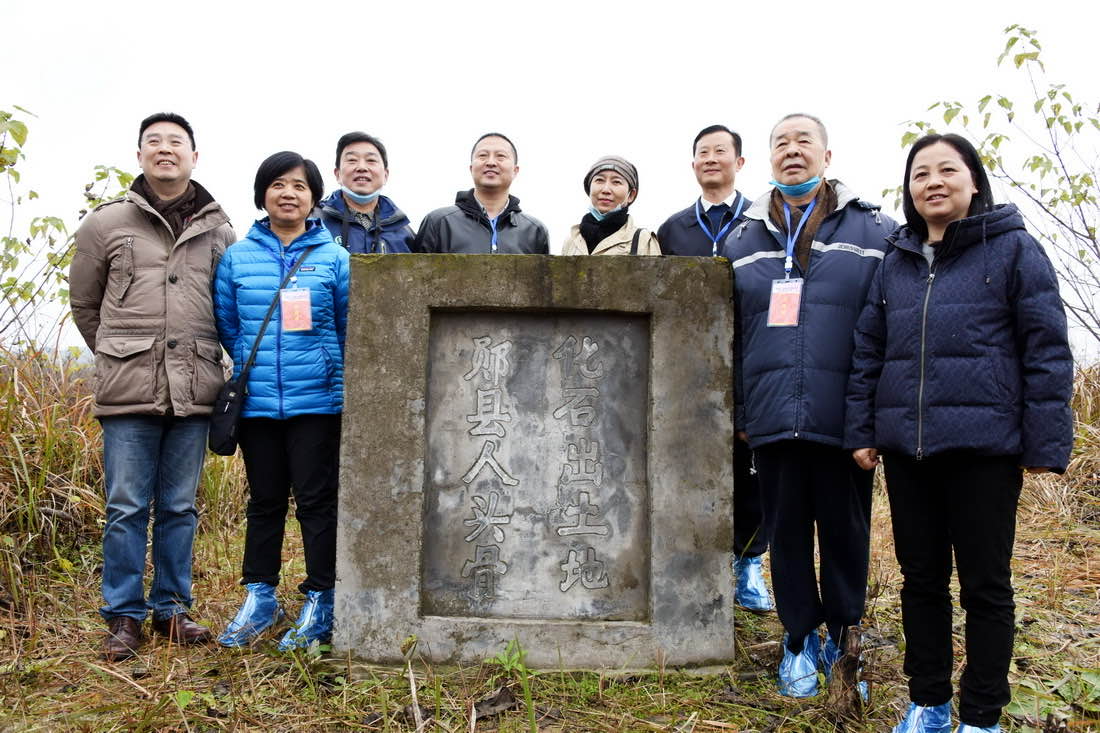 Paleoanthropologists take a group photo in Yunyang district of Shiyan, Hubei province, where skull fossils of ancient humans were unearthed. [Photo provided to chinadaily.com.cn]