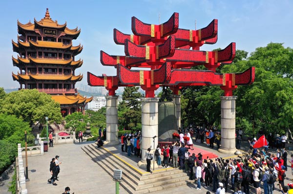 Wuhan's landmark Yellow Crane Tower reopens to the public on April 29. [PHOTO PROVIDED TO CHINA DAILY]
