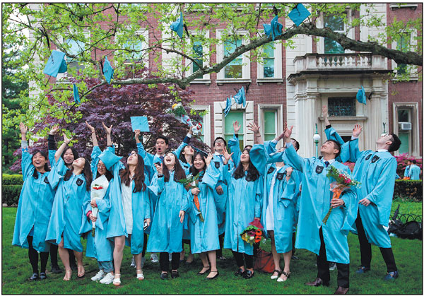 Chinese students take part in a graduation ceremony at Columbia University in New York in 2018. Guo Ke / Xinhua