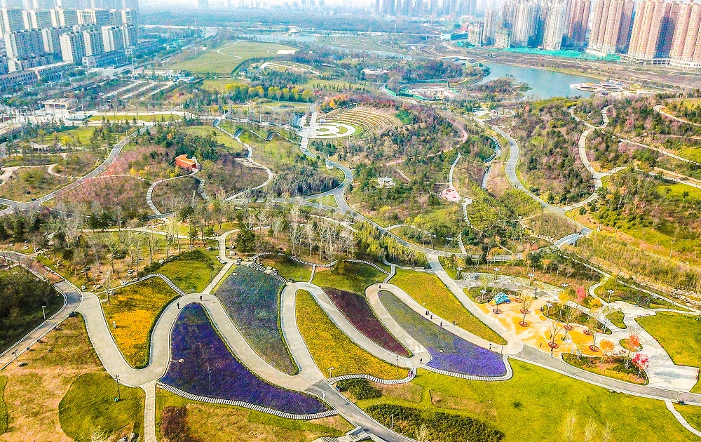 Wanna mellow out after a whole day’s work and be close to nature? Consider going to Chang’an Park in Xi’an, Shaanxi province, which features multiple landscapes including a natural river, lakes and mountainous scenery. Let’s first take a look at it from an aerial perspective, and imagine taking a few deep breaths there!