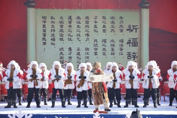 The traditional ceremony attracted thousands of residents and tourists who braved the extreme cold and strong wind on the frozen river.