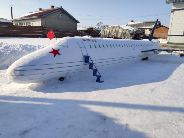 The 73-year-old farmer spent 10 days creating the snow sculpture – an airplane measuring 12 meters long and one meter high - after heavy snow fell in the city.