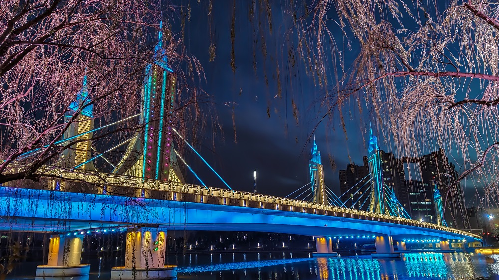 Let’s take a stroll on a "rainbow" bridge and enjoy the charming night scenes on the outskirts of Beijing!