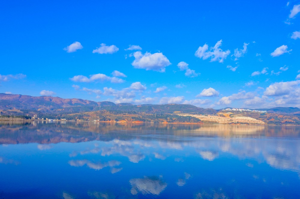 The clear water of Yangzonghai Lake is like a bright mirror, reflecting the beautiful surrounding views. [Photo/IC]