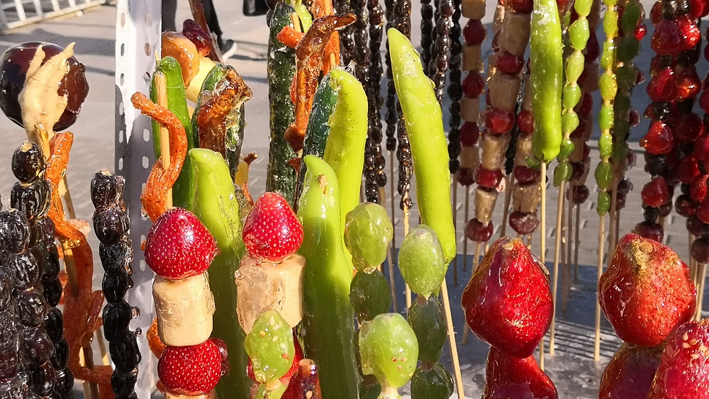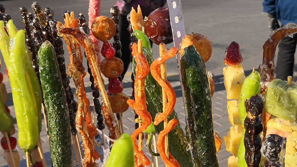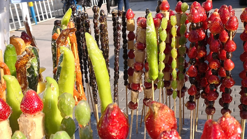 Have you ever tried Tanghulu, or sugar-coated hawthorns on a stick? Even if you have, now is the time to taste some new flavors -- such as cucumber, sausage, mooncake and chicken feet -- in Harbin, Heilongjiang province! And you’re also welcome to share your taste experience with us!