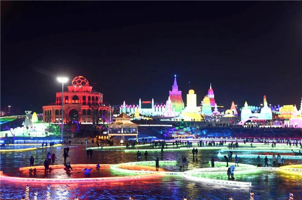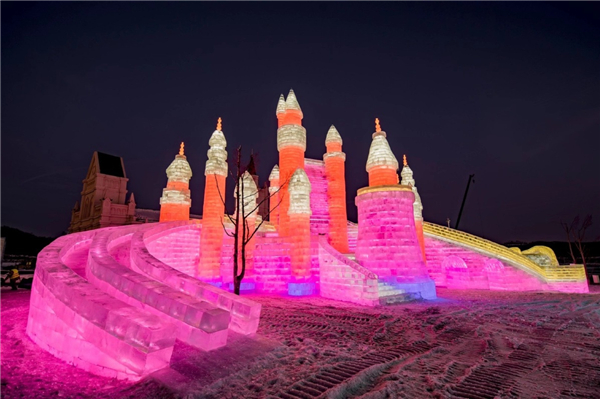 In the park, tourists can enjoy 142 ice and snow buildings and creations, including colorful ice towers, ancient castles and snow sculptures.