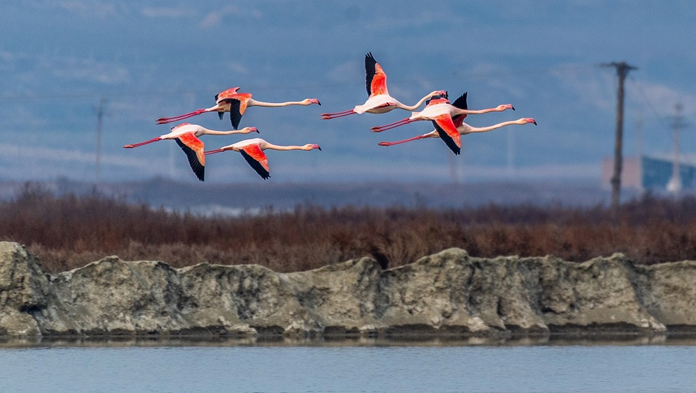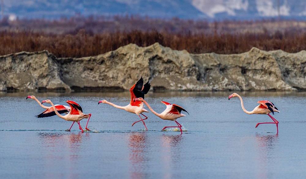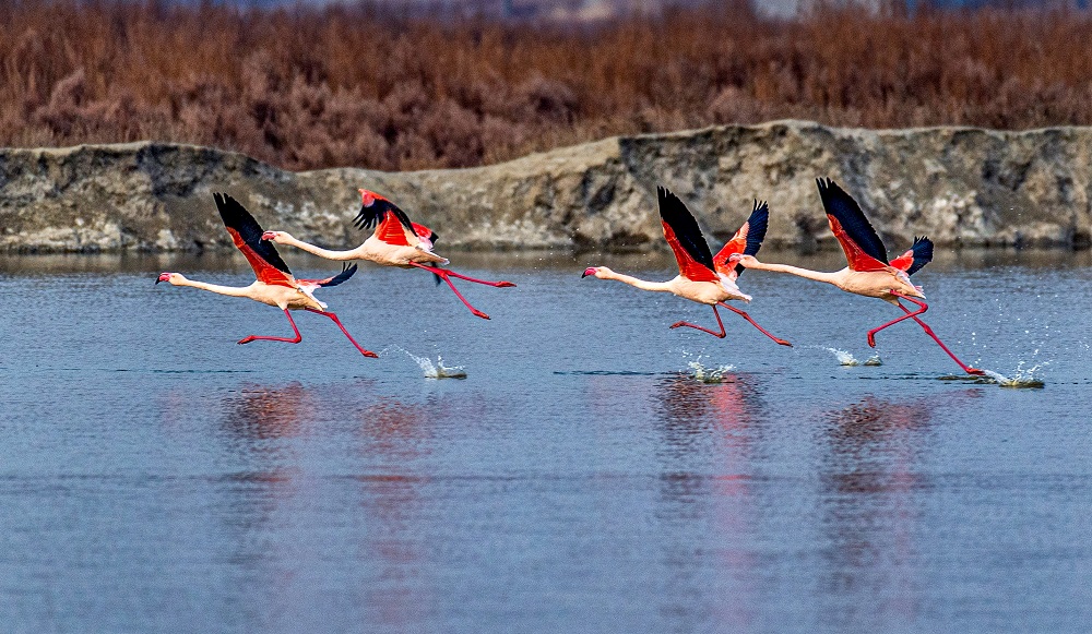 A flock of flamingos is spotted at the Salt Lake Scenic Spot in Yuncheng, Shanxi province. [Photos/IC]