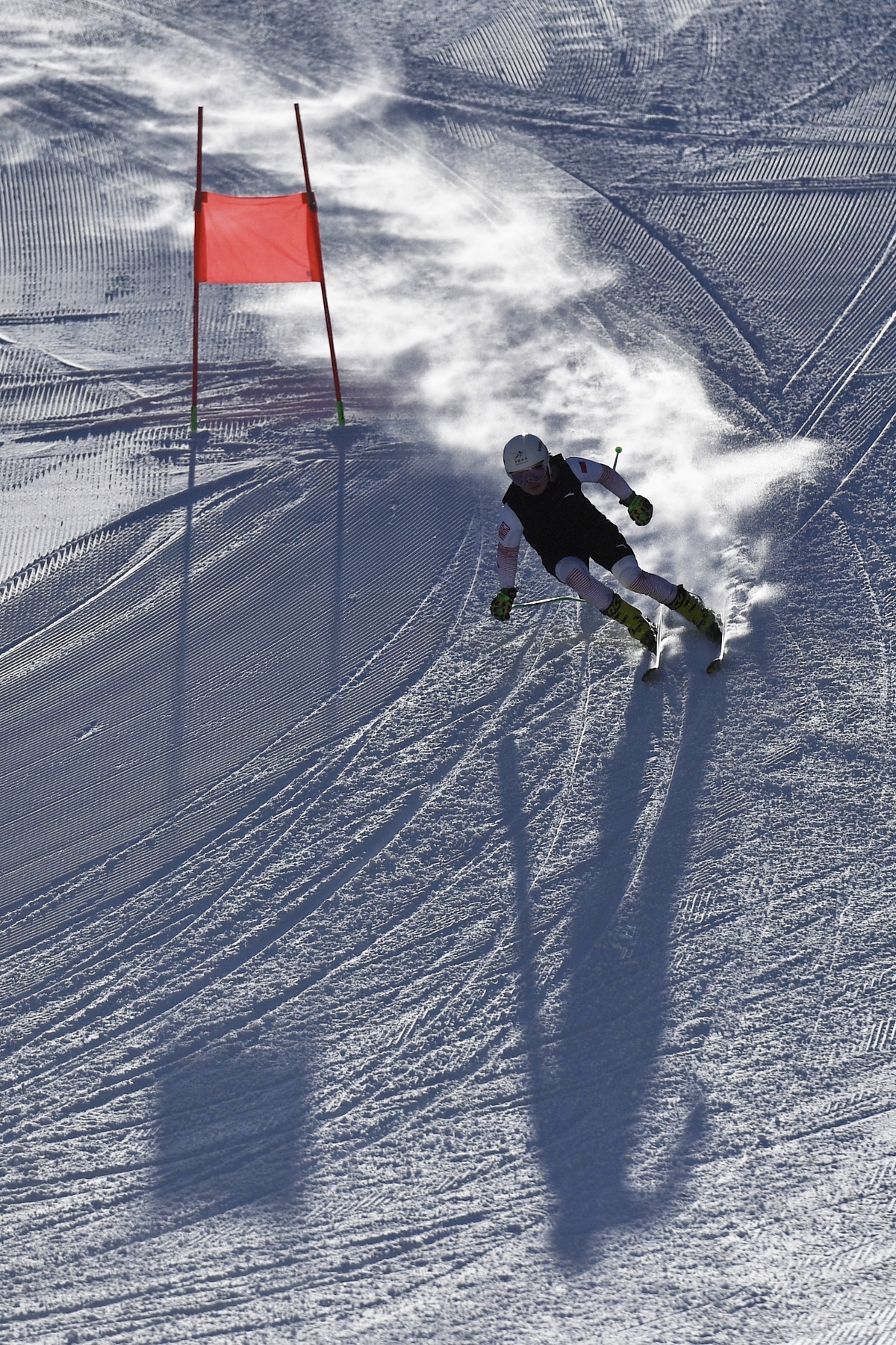 A member of China's national alpine skiing team whips past a gate during training at Zhangjiakou's Changchengling Ski Resort in North China's Hebei province, on Dec 20, 2020. [Photo by Wei Xiaohao/chinadaily.com.cn]