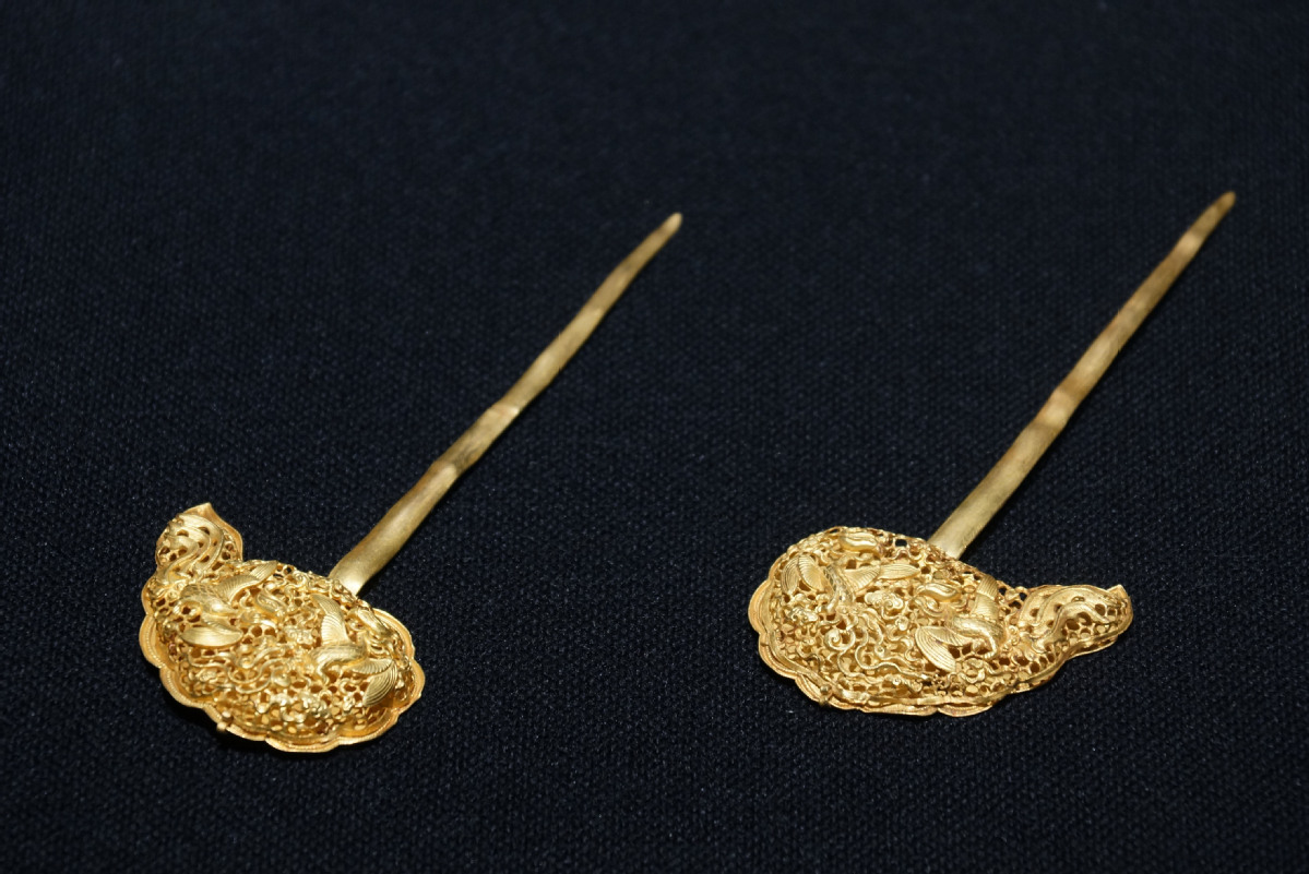 136 pieces of jewelry wore by imperial families during the Ming Dynasty (1368-1644) are on display at the Dalian Museum in Northeast China’s Liaoning province. They are imperial treasures made by the Palace and were used at ceremonies, giving a strong atmosphere to the imperial court and expressing the fashionable aesthetic taste of the aristocracy in those days.