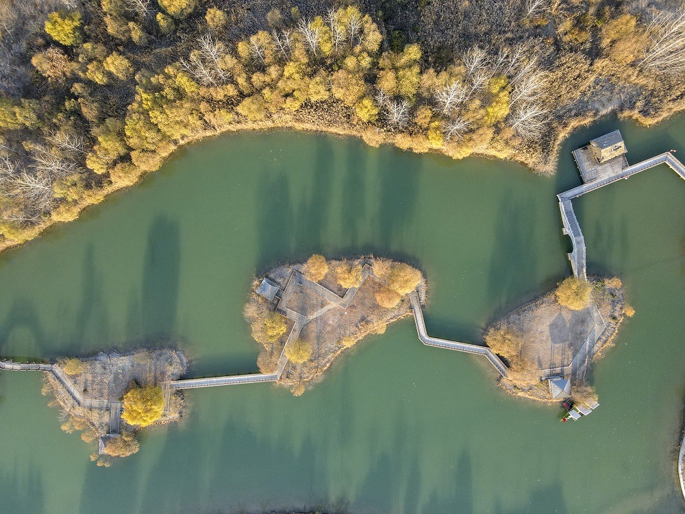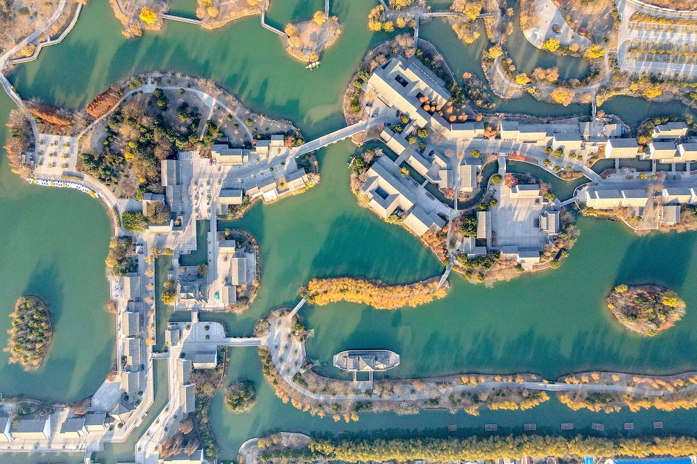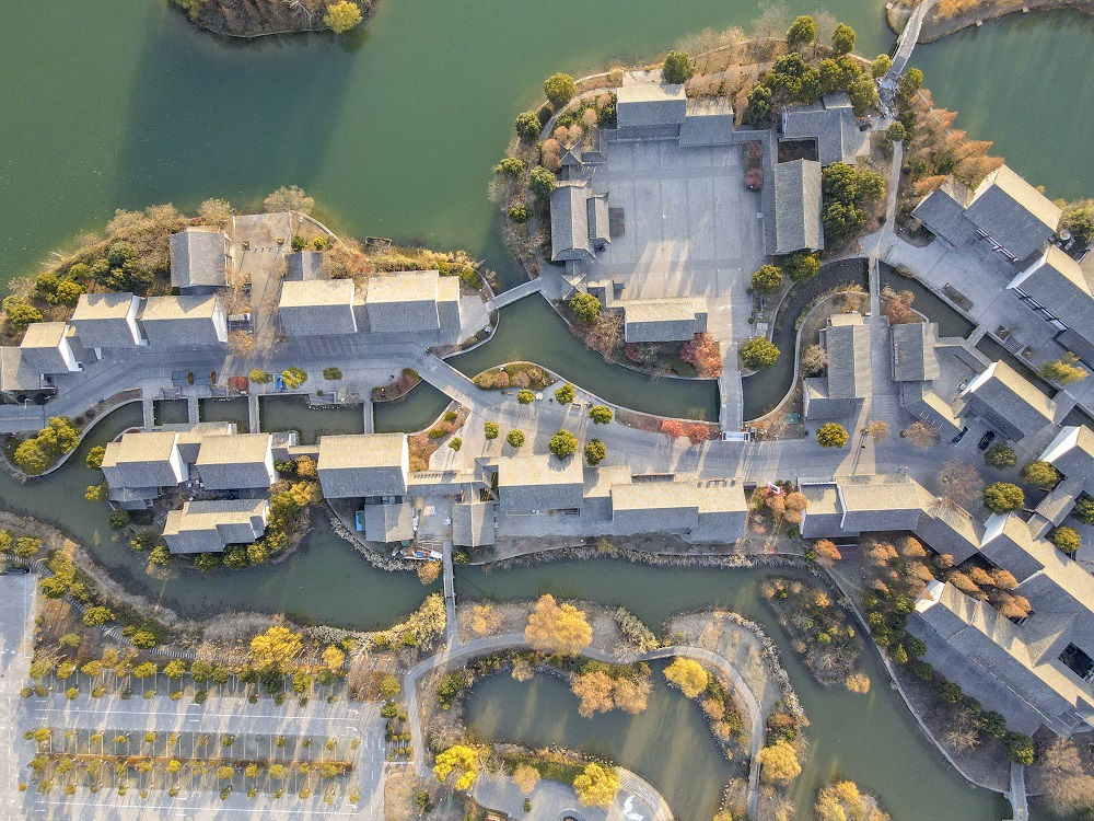 Located in Huaian, East China’s Jiangsu province, the Shuifucheng Scenic Spot features pavilions and bridges over flowing streams, all made of black bricks and grey tiles. It resembles a water castle with a distinct oriental style and nearby colorful vegetation, even in wintertime!