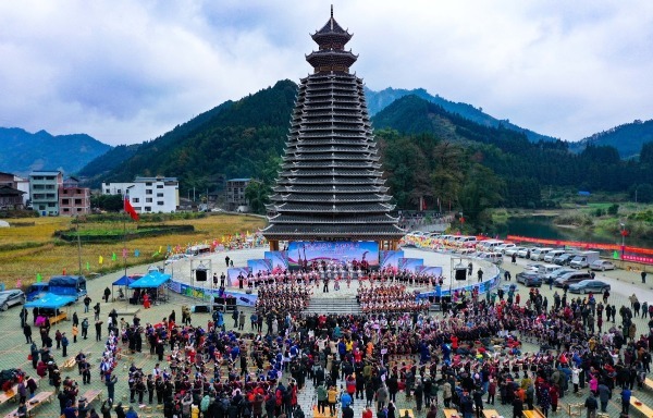 Sixteen Dong ethnic choruses from Hunan and Guizhou provinces and the Guangxi Zhuang autonomous region gathered in Longsheng county in Guangxi on Tuesday to celebrate the traditional Dong spring festival, which falls on Dec 15 this year in Guangxi (Nov 1 on the Chinese lunar calendar).
