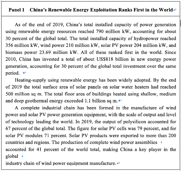 A thriving civilization calls for a good eco-environment. Facing increasingly severe global problems such as climate change, environmental risks and challenges, and energy and resource constraints, China embraces the vision of a global community of shared future and accelerates its transformation towards green and low-carbon development in economy and society. In addition to promoting clean and low-carbon energy use domestically, China has been an active participant in global energy governance, exploring a path of worldwide sustainable energy alongside other countries. At the general debates of the 75th United Nations General Assembly in September 2020, President Xi pledged that China will scale up its Intended Nationally Determined Contributions by adopting more vigorous policies and measures, striving to have carbon dioxide emissions peak before 2030 and to achieve carbon neutrality before 2060. In the new era, China’s energy strategy will provide forceful support for sound and sustained economic and social development, and make a significant contribution to ensuring world energy security, addressing global climate change, and boosting global economic growth.