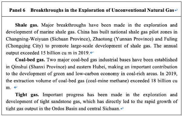 Increasing the production of natural gas. In order to increase domestic natural gas supply, China has strengthened basic geological surveying and resource evaluation, and stepped up scientific and technological innovation and industrial support for conventional natural gas production. It is also making breakthroughs in unconventional natural gas exploration and development, such as shale gas and coal-bed gas, and is working on large-scale shale gas exploitation. It is improving relevant policies for the exploitation and utilization of unconventional natural gas. Focusing on the Sichuan, Ordos and Tarim basins, it has built a number of natural gas production bases with an output of more than 10 billion cu m. Since 2017, natural gas output has been increasing by more than 10 billion cu m per year.