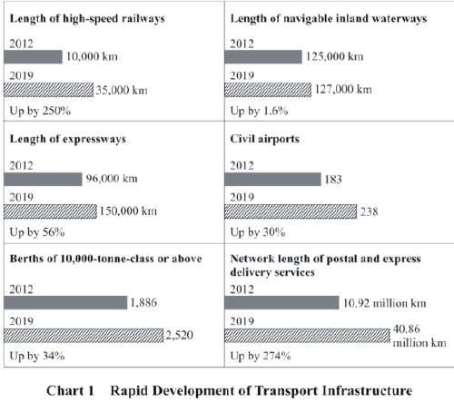 China has made all-round improvements to the quality of transport. The rapid growth of Internet Plus Transport and other new business models has offered more equitable access to more diversified services of higher quality, facilitating the movement of people and goods, and strengthening the accessibility and support functions of transport. Transport is playing a stronger role in supporting the nation's economic and social development, and in promoting investment, stimulating consumption, and sustaining growth.
