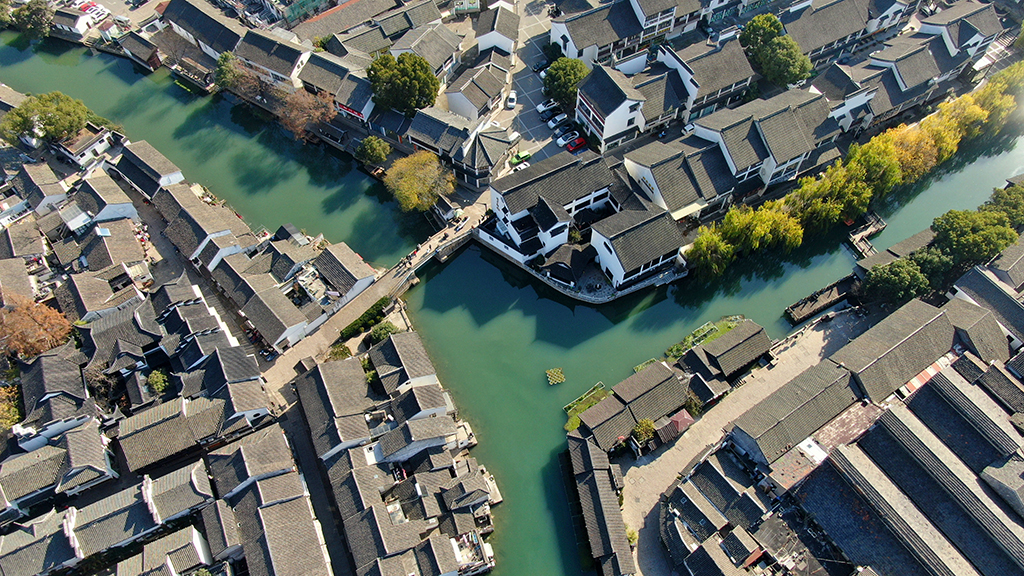 A bird’s eye view of Tongli Ancient Town in East China’s Jiangsu province. [Photo/IC]