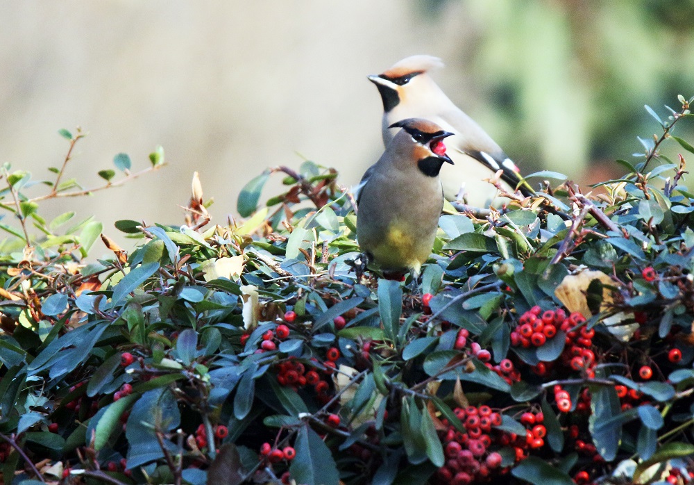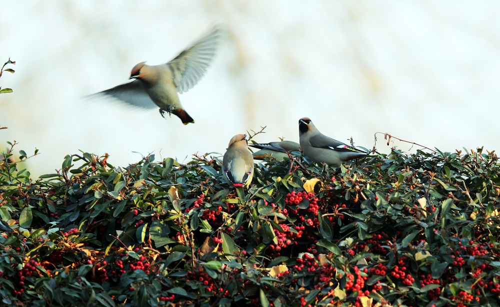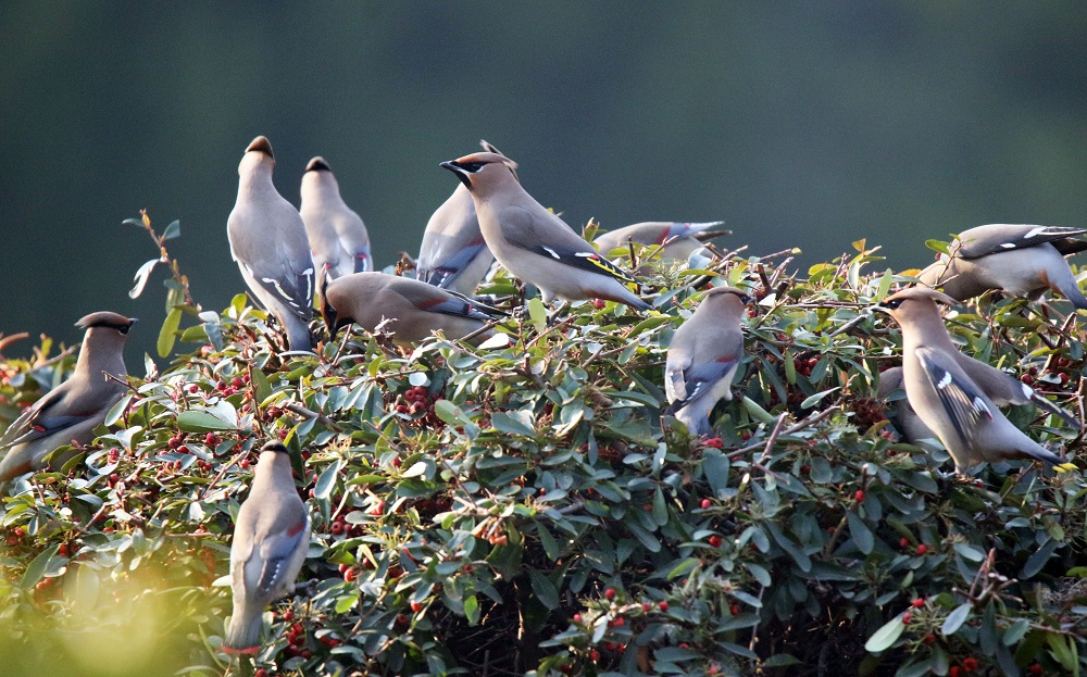 Flocks of Bohemian waxwings (Bombycilla garrulus) are having some R&R in Yantai, Shandong province at the moment. Said to be fussy about their habitat, they look very pleased to be there, probably indicating that the local natural environment suits them nicely!
