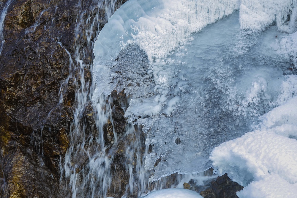 Through the snow and ice of Wangtian’e Valley in Changbai county, Jilin province, brooks murmur lightly, breaking the silence of the area with their joyful babbling!