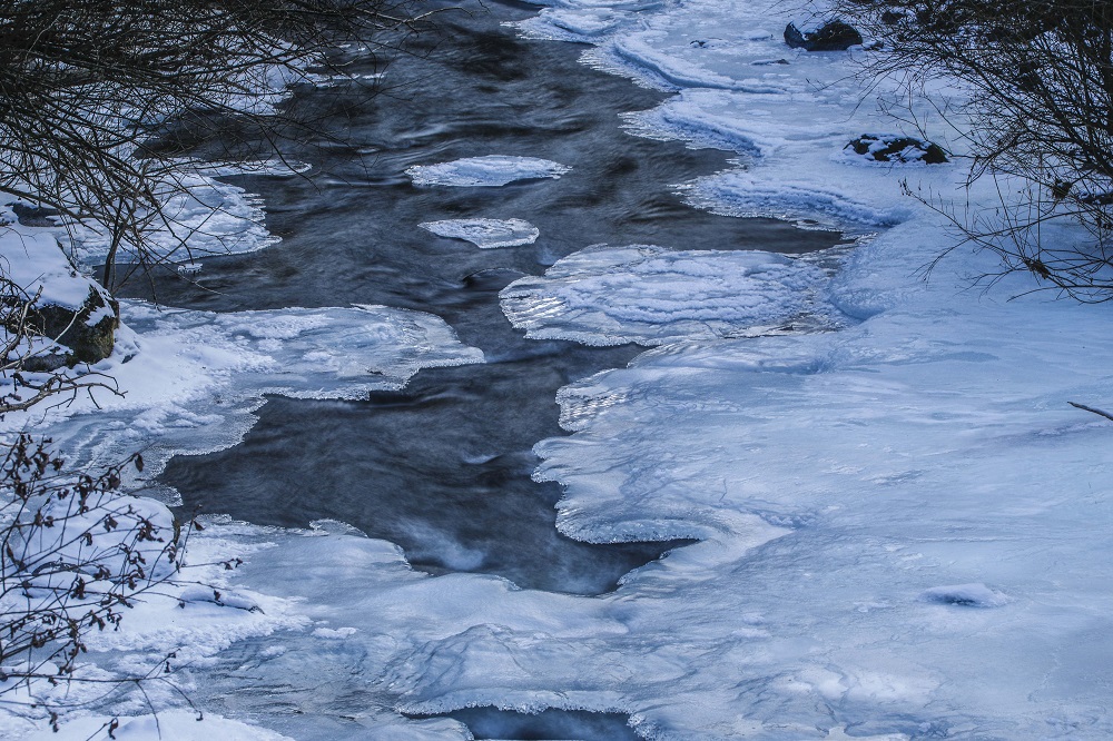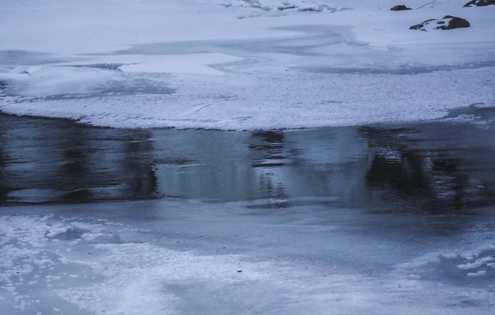 Charming views of the brooks running through the snowy valley of Changbai county, Jilin province. [Photos/IC]